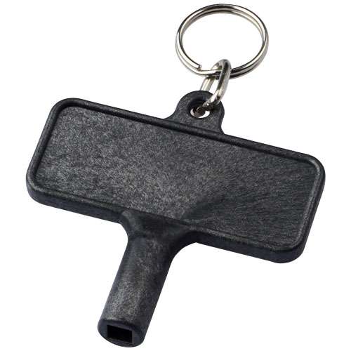 Chiave multiuso con portachiavi per oggetti quali radiatori, contatori, lampioni. Apertura quadrata con lati di 5 mm.