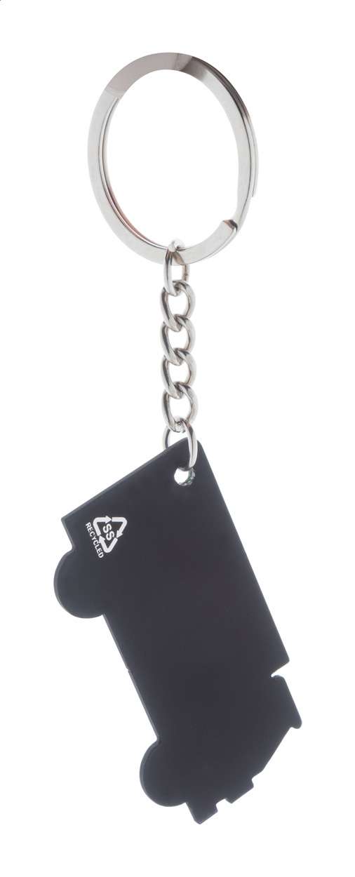 Portachiavi in acciaio riciclato a forma di camion con finitura gommata. Trattamento speciale che permette l'incisione laser a specchio.