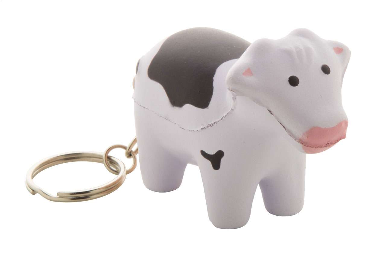 Portachiavi antistress a forma di mucca.