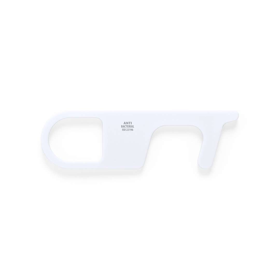 Portachiavi igienico antibatterico e anti contatto, realizzato in resistente ABS con finitura solida. Appositamente progettato per evitare di toccare con le mani superfici di uso comune (maniglie, interruttori, rubinetti per uso pubblico, bancomat ...). Con punzone per il dito e presentato in una busta individuale, consigliato per la tampografia.I prodotti con trattamenti antibatterici sono in grado di ridurre drasticamente le cariche batteriche presenti sulle superfici dei materiali, grazie all'incorporazione di agenti microbici permanenti statici, altamente efficaci nell'inibire e prevenire la contaminazione batterica.Articolo secondo la norma ISO 22196, che determina l'attività antibatterica in materiali plastici e superfici non porose, che permette di conoscere l'efficacia dell'inibizione microbica che gli additivi hanno sugli oggetti trattati attraverso una valutazione quantitativa