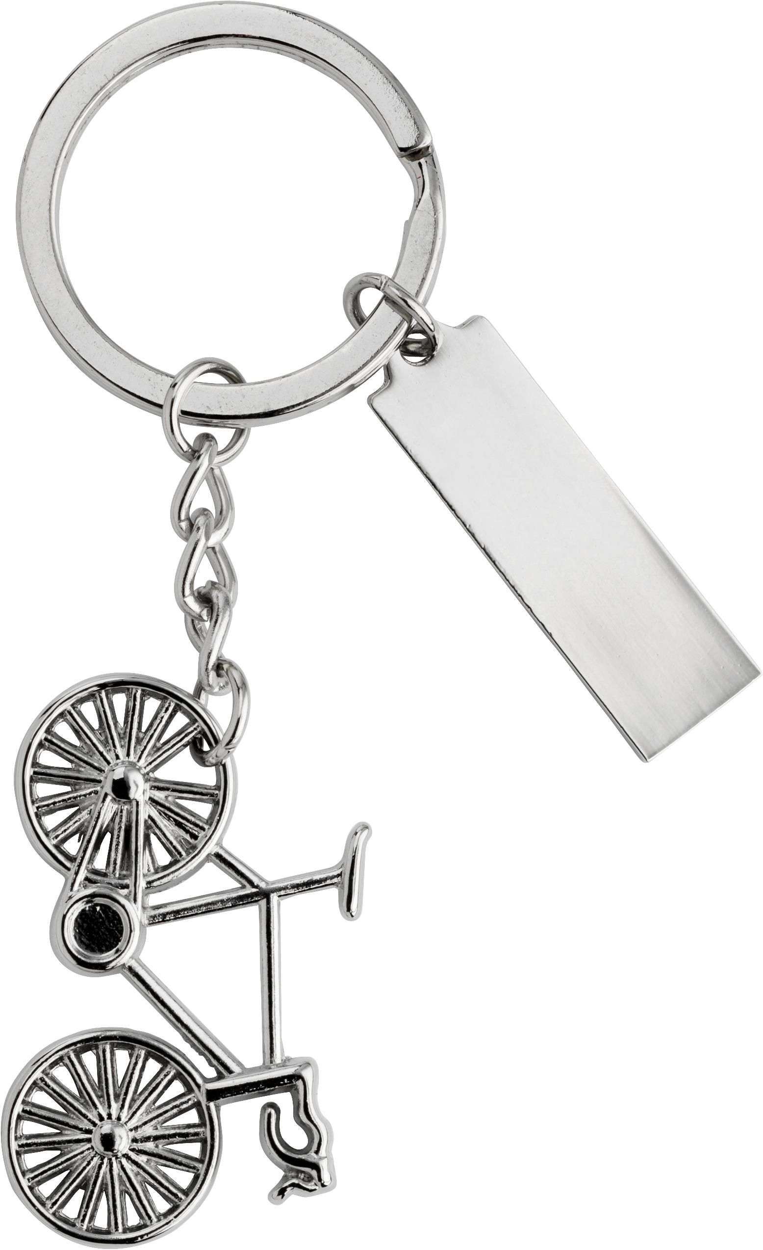 Portachiavi bicicletta in metallo con una placca rettangolare per incisione, confezione regalo