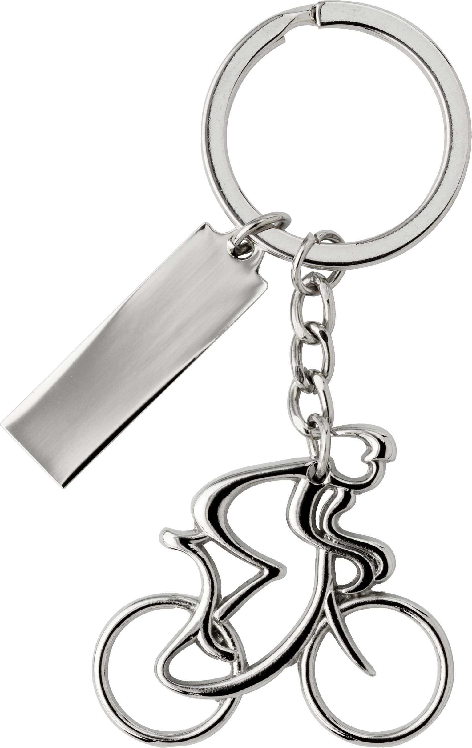 Portachiavi ciclista in metallo con una placca rettangolare per incisione, confezione regalo
