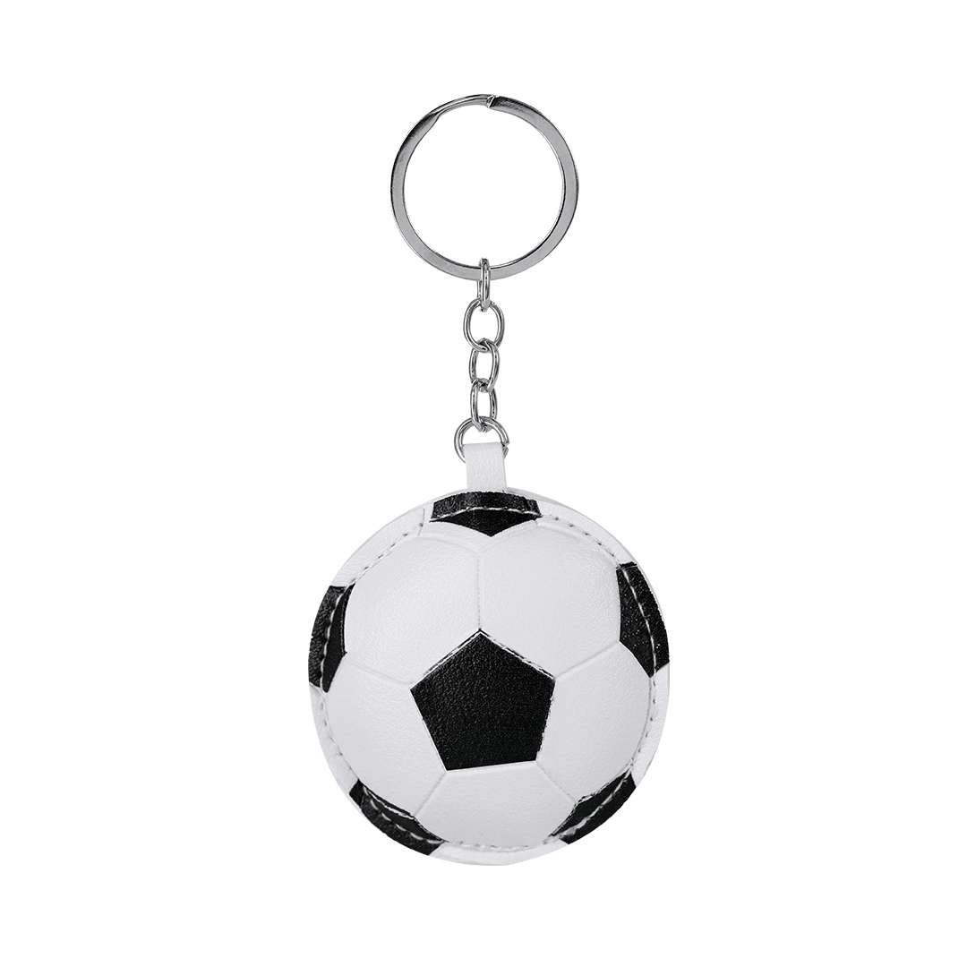 Portachiavi con design originale del classico calcio in rilievo, realizzato in PU. Ha un anello in metallo cromato.
