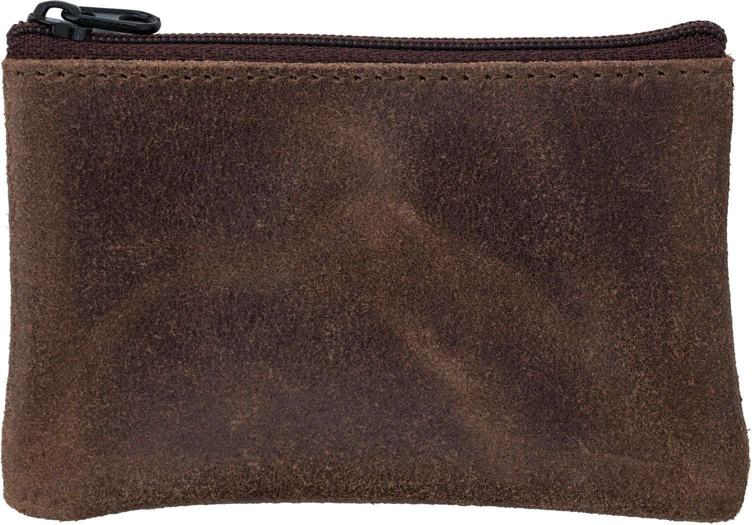 Portachiavi in pelle con funzione portamoneta, anello in metallo, chiusura lampo, realizzato con materiale di scarto di grembiuli in pelle