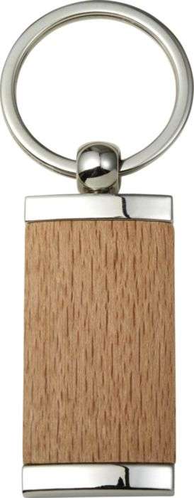 Portachiavi in metallo e legno con anello in acciaio, confezionato singolarmente in polybag