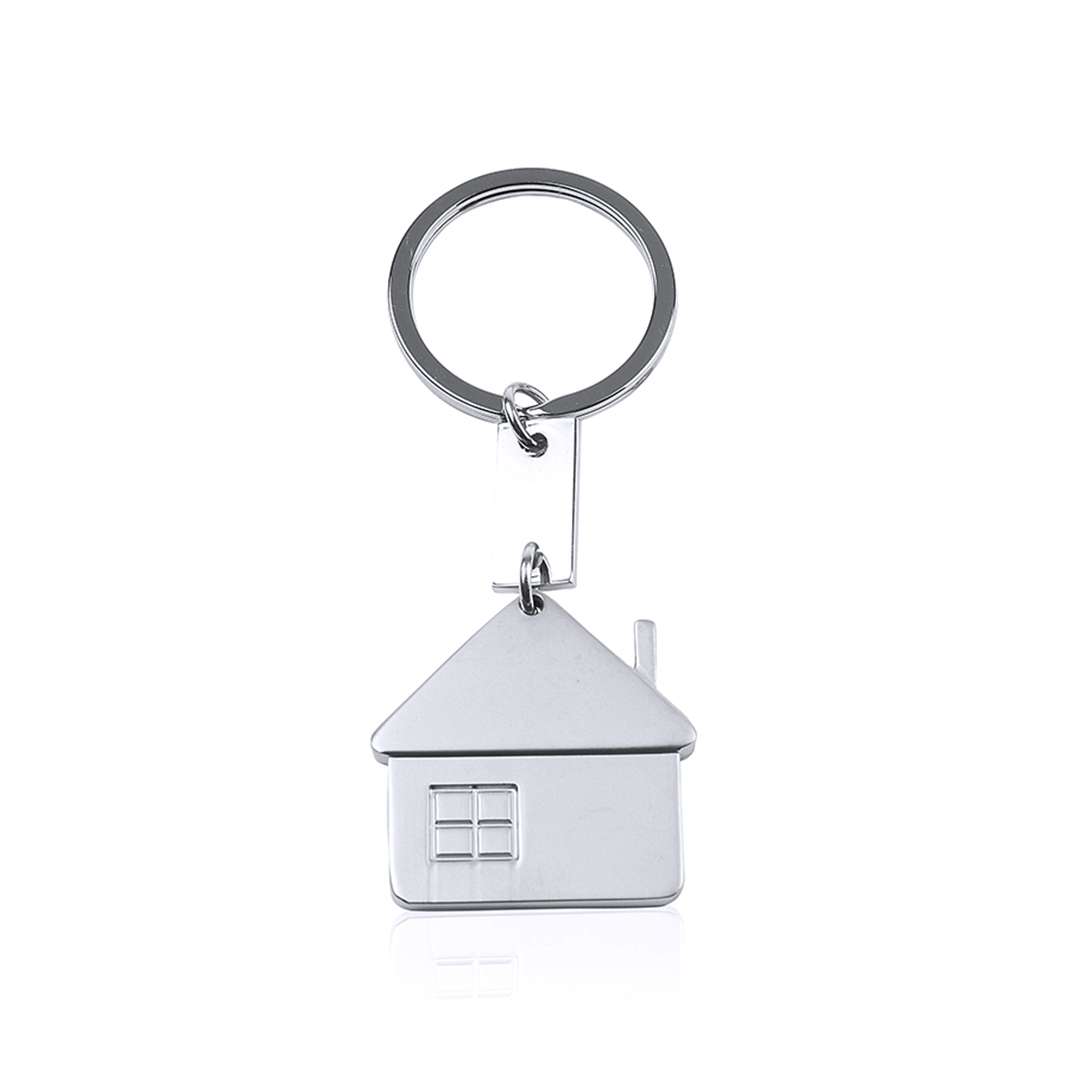 Portachiavi in metallo dal design a forma di casa di una elegante finitura opaca. Con corpo appositamente progettato per la stampa laser.