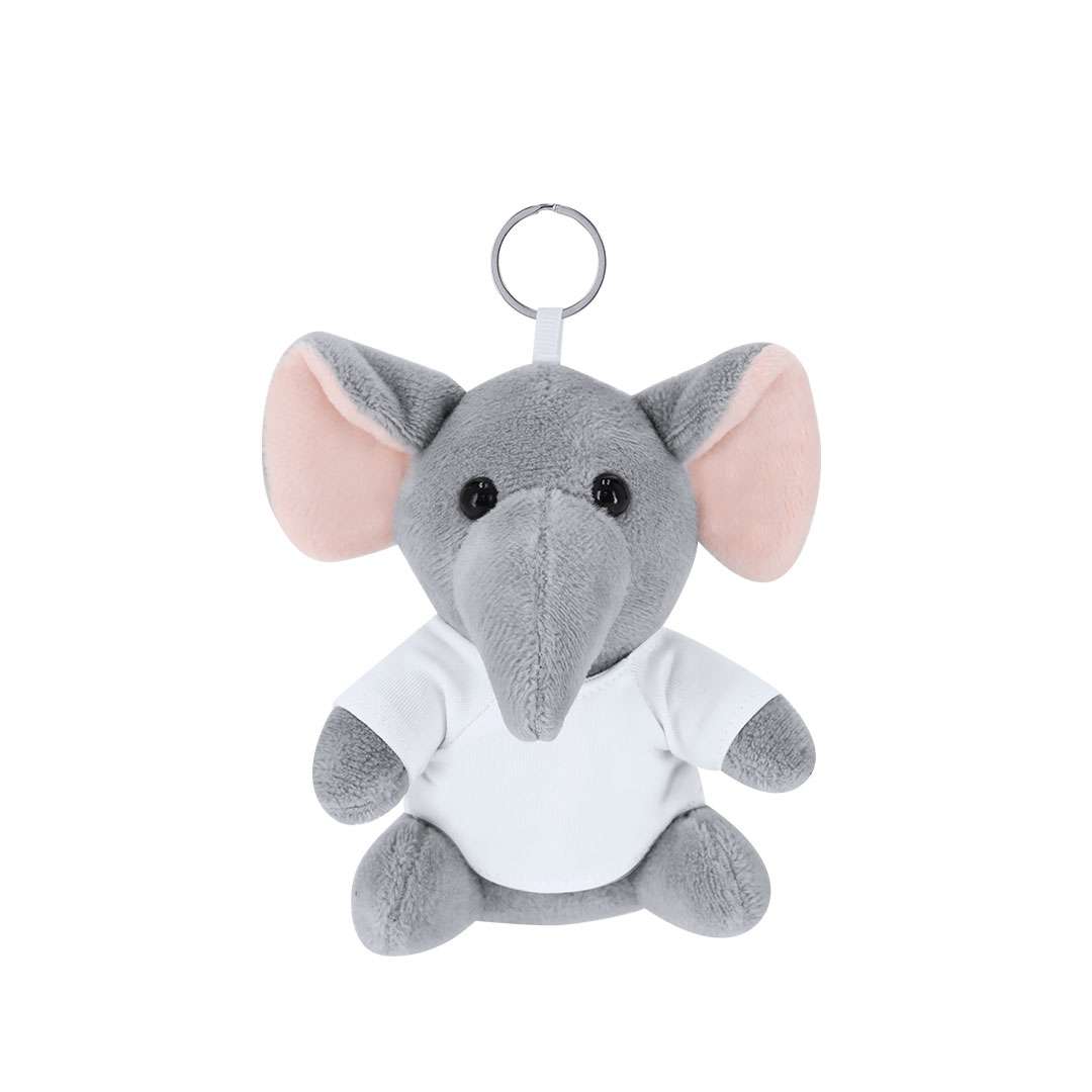 Portachiavi di peluche a forma di elefante con maglietta personalizzabile con anello metallico per un facile trasporto, ideale per la sublimazione.