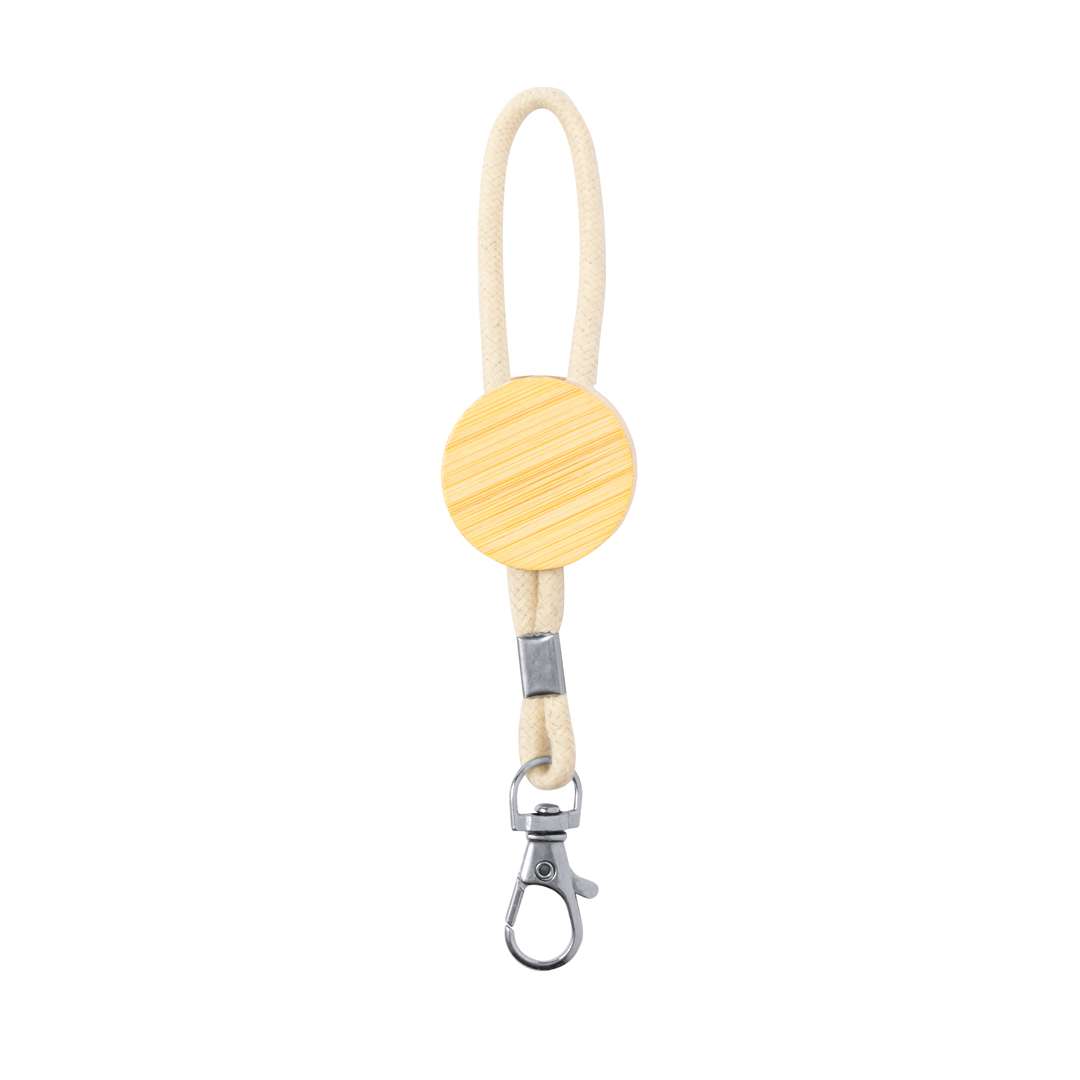 Portachiavi ecologico in bambù e corda di cotone. Include uno speciale pezzo rotondo per la stampa e un moschettone girevole in metallo. Presentato singolarmente in un sacchetto di carta riciclata.Materiali come il bambù favoriscono l'utilizzo di materie prime naturali, riducendo le emissioni inquinanti. Proviene da una pianta altamente resistente e versatile, con una rapida crescita e rigenerazione, rappresentando un'ottima alternativa all'uso del legno tradizionale.