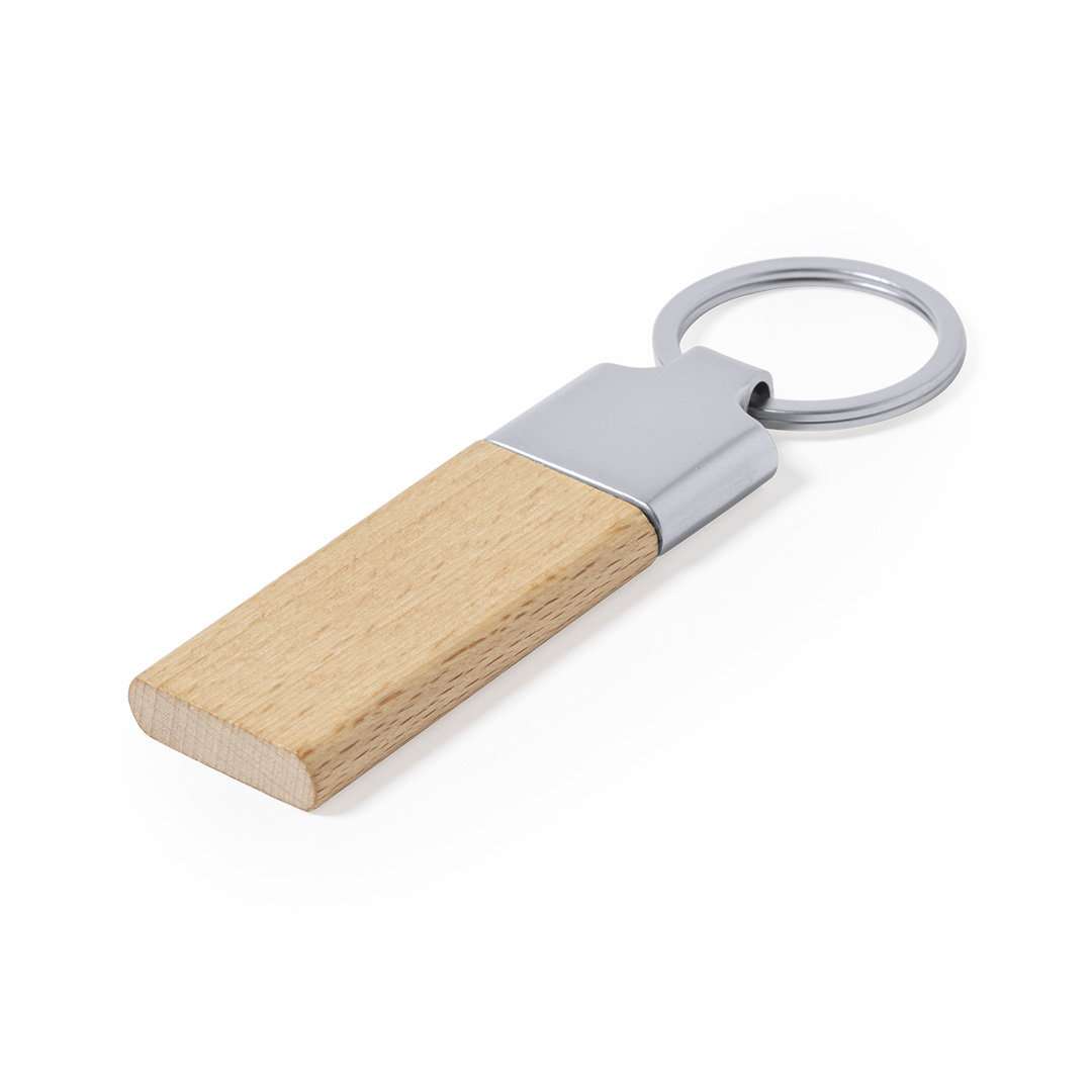 Portachiavi realizzato in una combinazione di metallo lucido e legno di faggio verniciato. Ampia area di stampa a disposizione. Confezionato in polybag singolo con cartoncino kraft.