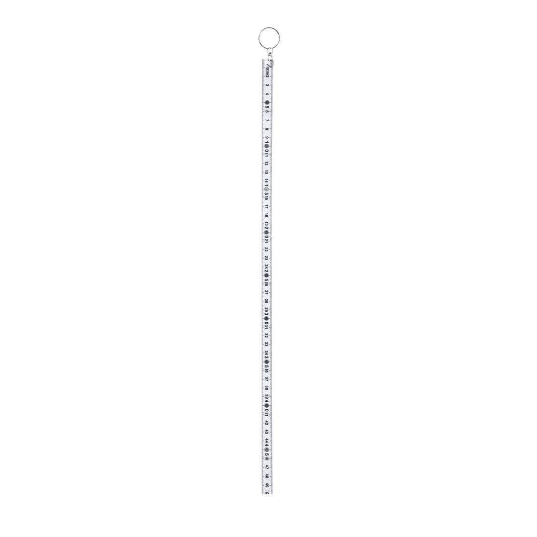 Portachiavi righello pieghevole da 50 cm in ABS resistente con anello metallico girevole. Scala in centimetri nera visibile su entrambi i lati. Posizioni regolabili a 90º, 180º e 270º per maggiore versatilità.