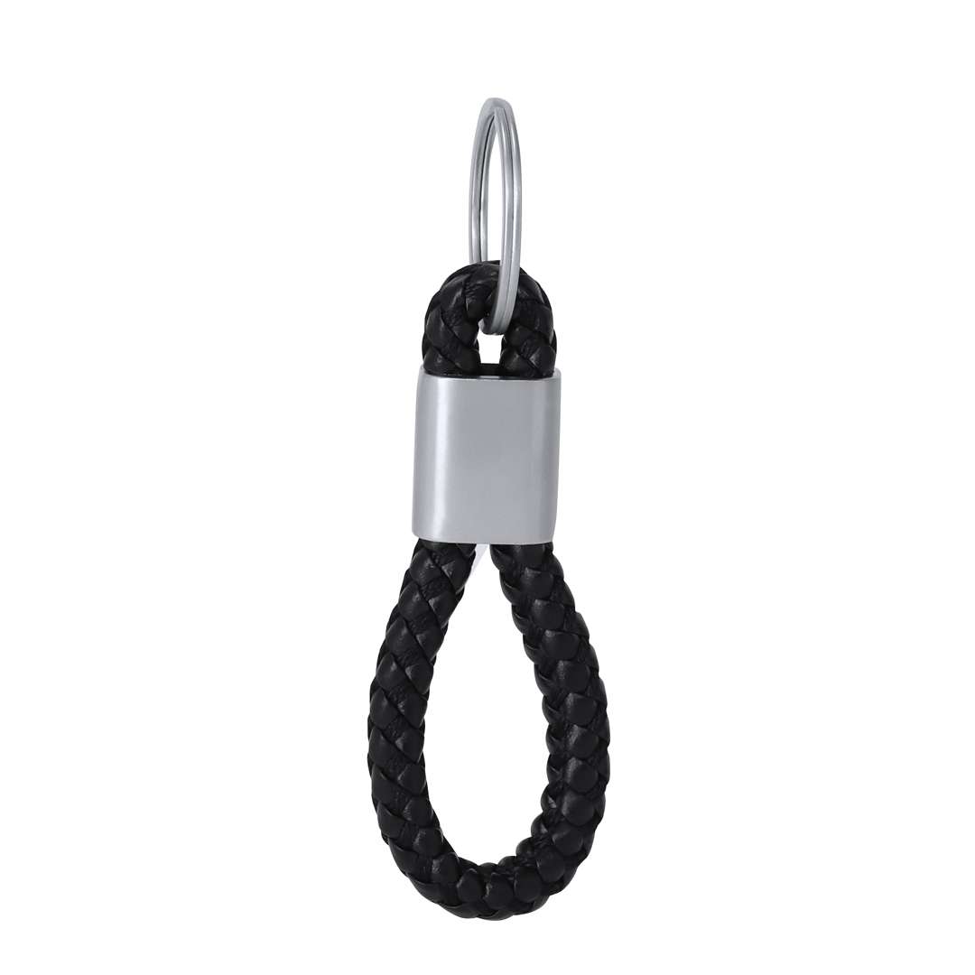 Portachiavi elegante con cordoncino in pelle PU intrecciata. Comprende un pezzo centrale in lega opaca, appositamente progettato per la marcatura laser.