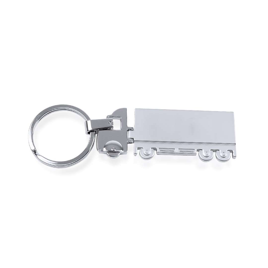 Portachiavi in metallo dal divertente design a foma di camion, appositamente progettato per la marcatura laser. Con cabina in finitura lucida e rimorchio in finitura opaca.