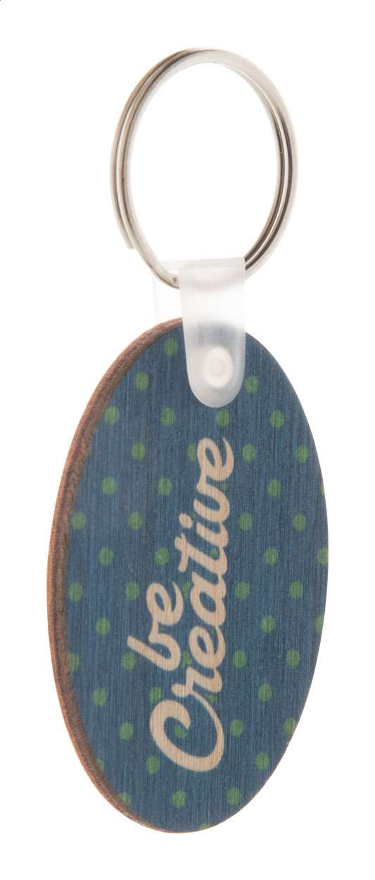 Portachiavi in legno di betulla laminato di forma ovale con stampa a colori. Il prezzo include la stampa UV LED su un solo lato. Quantità minima: 200 pezzi.