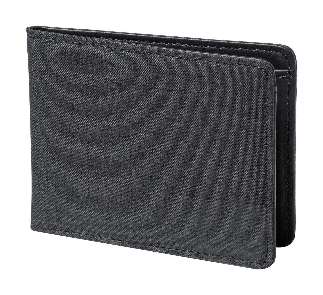 Portafoglio in poliestere RPET con protezione RFID e 6 scomparti per carte di credito.