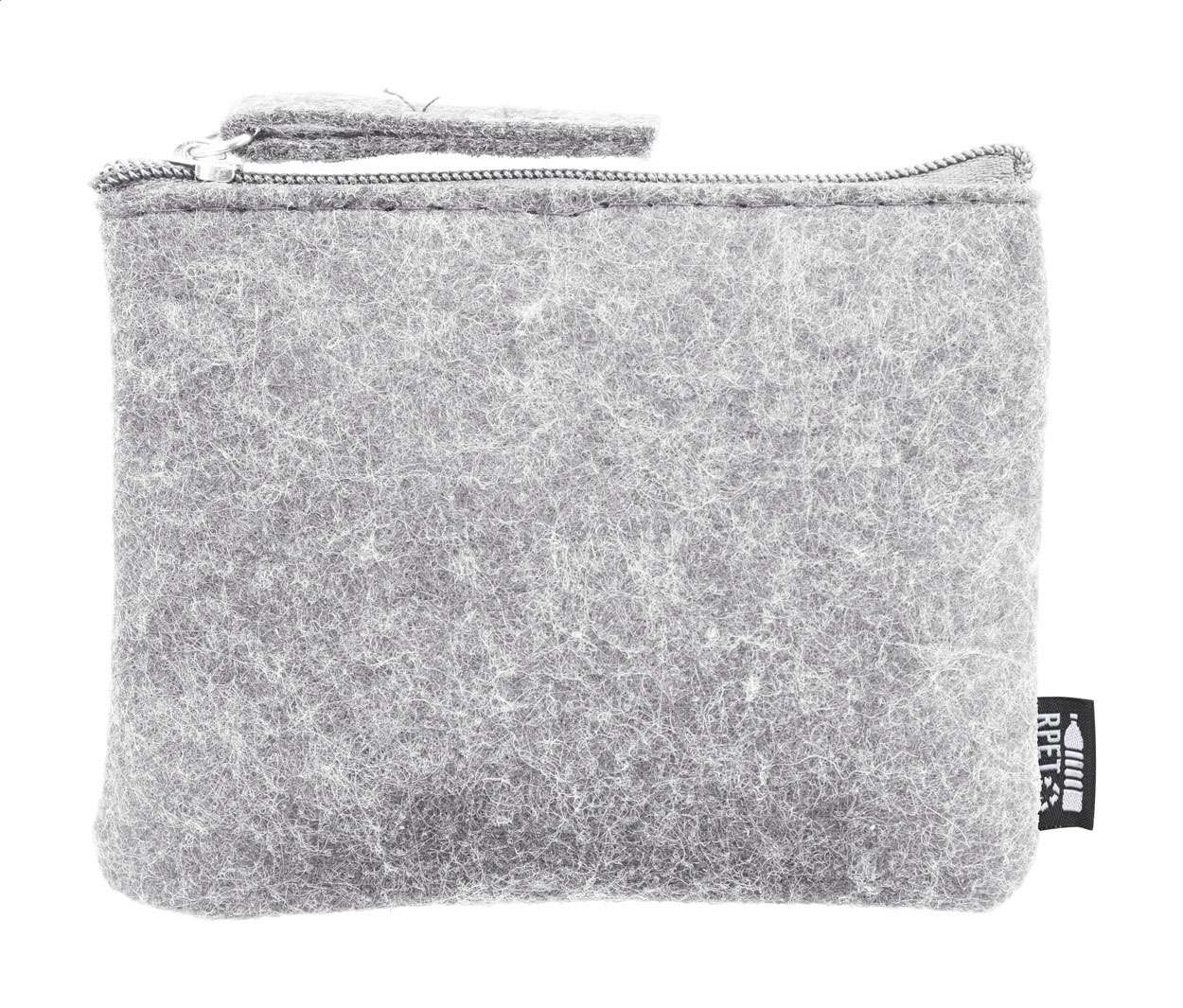Borsellino in feltro RPET con cerniera ed etichetta RPET.