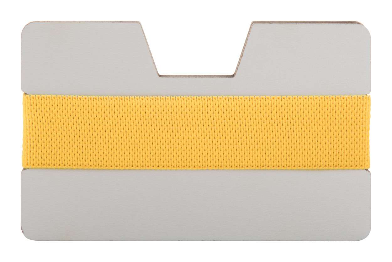Porta carte di legno HDF con cinturino in gomma elastica. Ideale per la stampa a LED UV.
