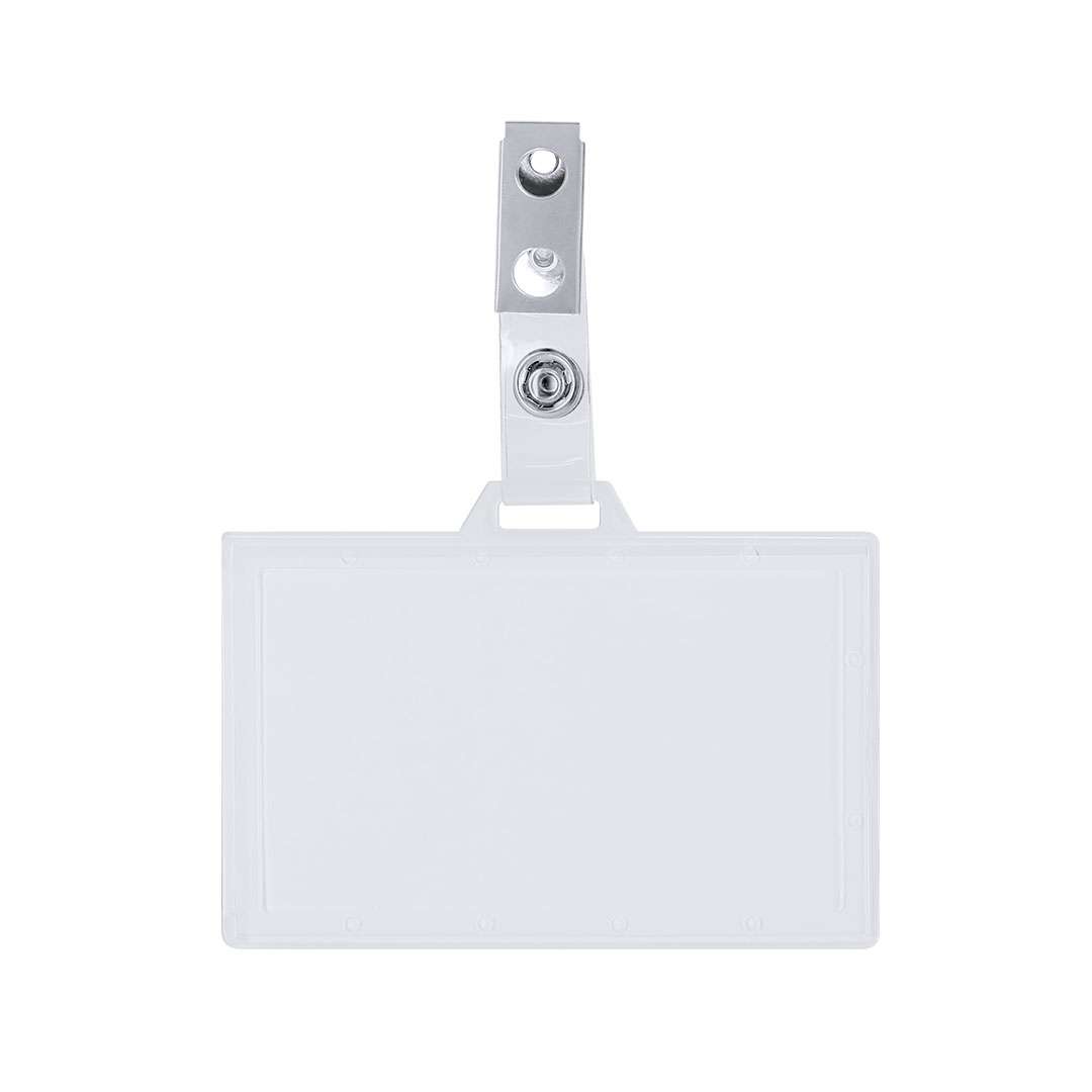 Identificatore PS rigido con morsetto metallico in orientamento orizzontale. Ideale per restare in giro e mostrare il tuo documento. Il sistema di chiusura è rimovibile e puoi usare l'identificatore insieme al cordino.
