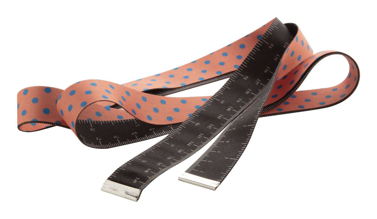 Metro da sarto in poliestere, lunghezza 150 cm con clip metalliche. Grafica stampata in sublimazione su entrambi i lati. MOQ: 100 pz.
