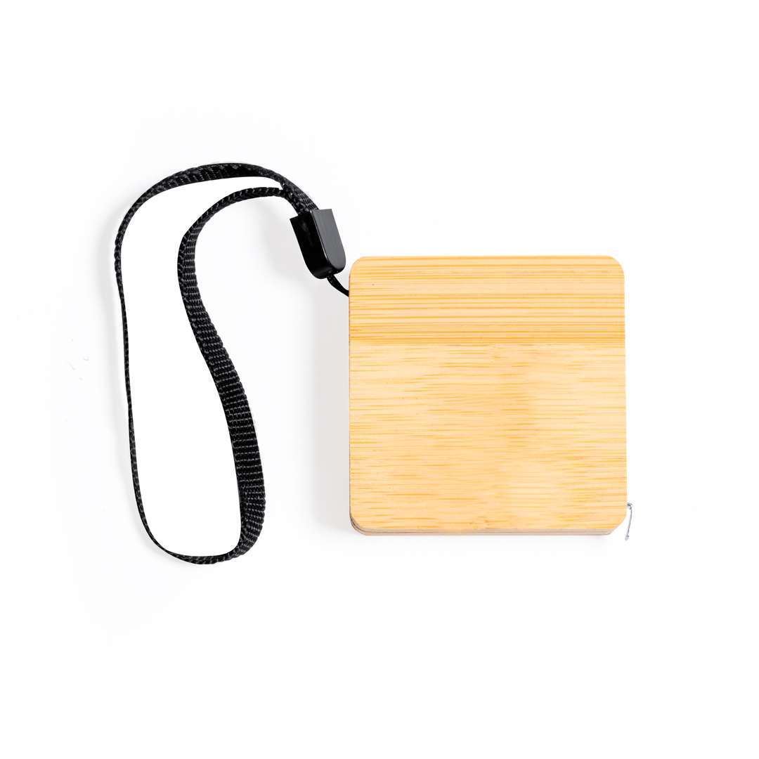 Flessometro da 1 m in bambù, con lama metallica in centimetri e pollici. Con cinghia di trasporto e presentato in una scatola dal design kraft. Materiali come il bambù promuovono l'uso di materie prime naturali e riducono le emissioni inquinanti. Inoltre, il bambù proviene da una pianta altamente resistente e versatile, con una rapida crescita e rigenerazione, che lo rende un'ottima alternativa all'uso del legno tradizionale.