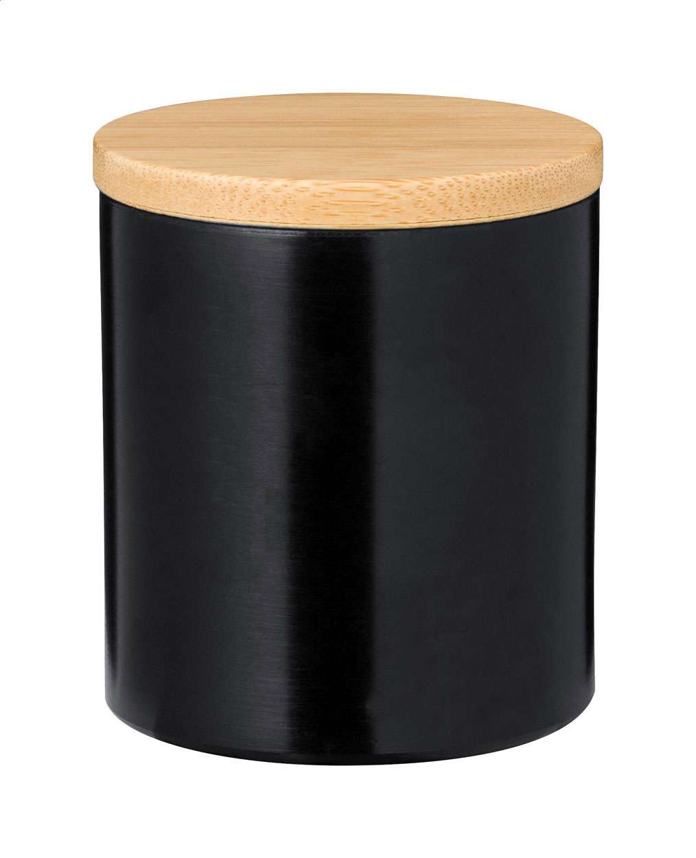 Candela profumata alla vaniglia in contenitore di alluminio con coperchio in bambù.