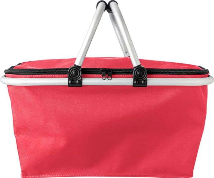 Cestino shopping pieghevole, linea Oxford, scomparto con chiusura lampo, impugnatura tonda in alluminio con presa in EVA, in poliestere 320 D