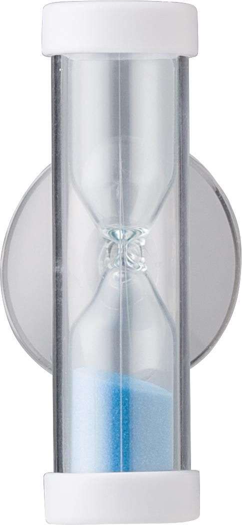 Clessidra piccola in vetro, dettagli in ABS, ventosa, tempo circa 3 minuti, confezione singolarmente in polybag
