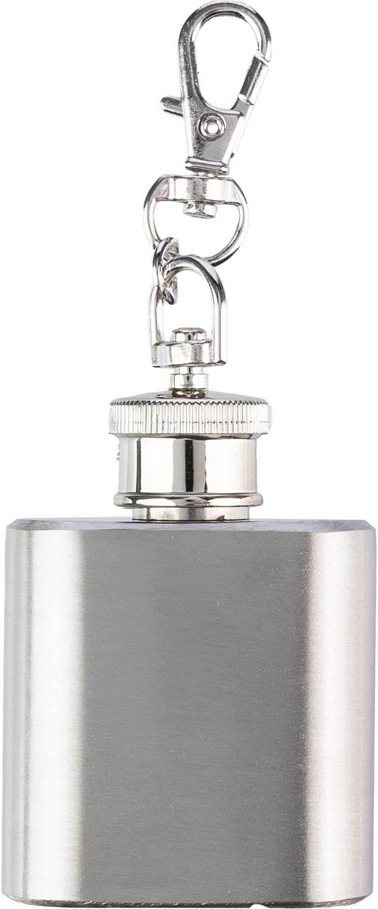 Fiaschetta in acciaio inossidabile 304, portachiavi con moschettone, confezionata singolarmente in una scatola in cartone avana, capacità 30 ml