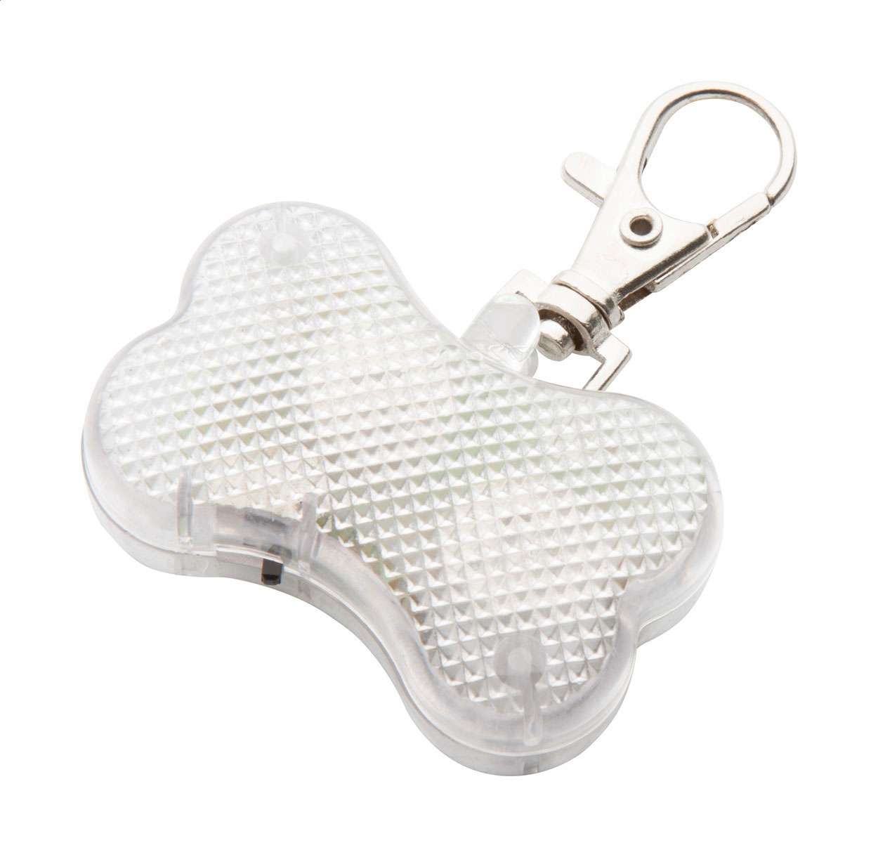 Luce di sicurezza per animali domestici a forma di osso con LED lampeggiante. Batterie a bottone incluse.
