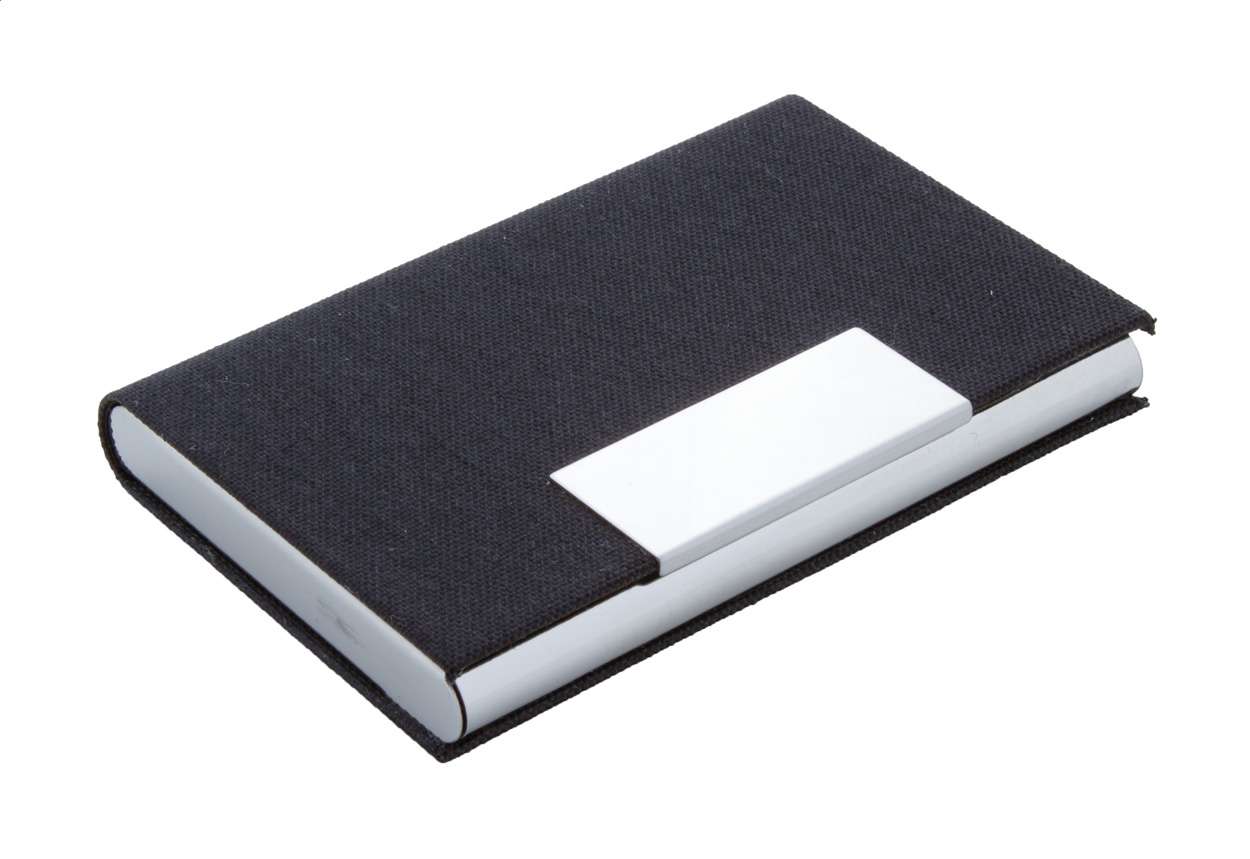 Portabiglietti da visita in metallo rivestito in poliestere RPET con parte metallica stampabile.