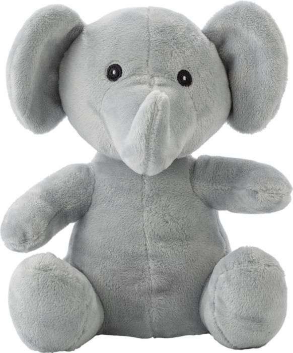 Peluche elefante, occhi, naso e bocca ricamati, include etichetta per la personalizzazione