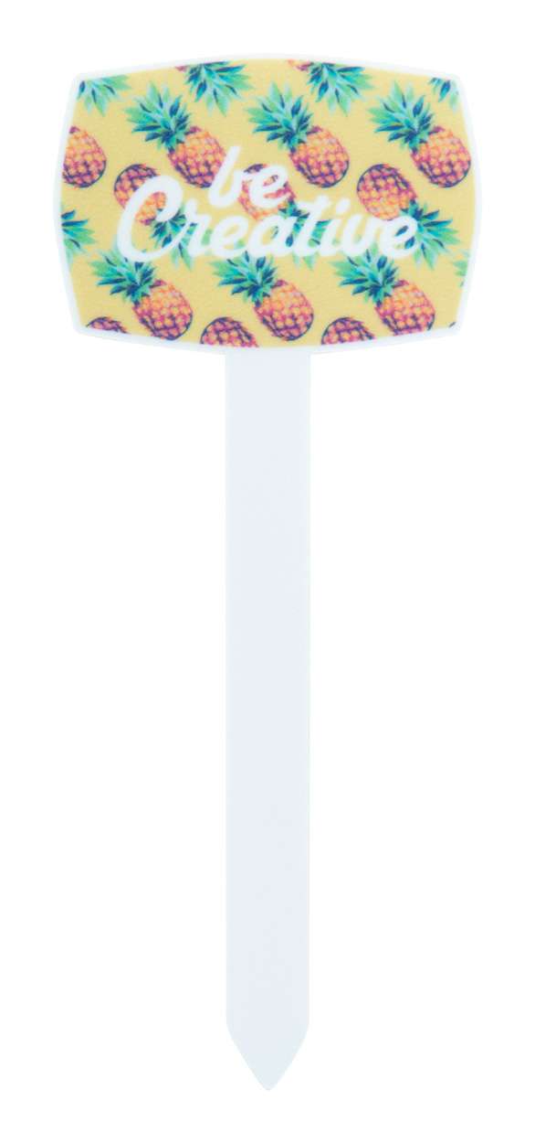 Etichetta a "T" in plastica stampata a colori, ideale per contenitori per semi o vasi. Il prezzo comprende la stampa UV-LED su un lato. MOQ: 250 pezzi.