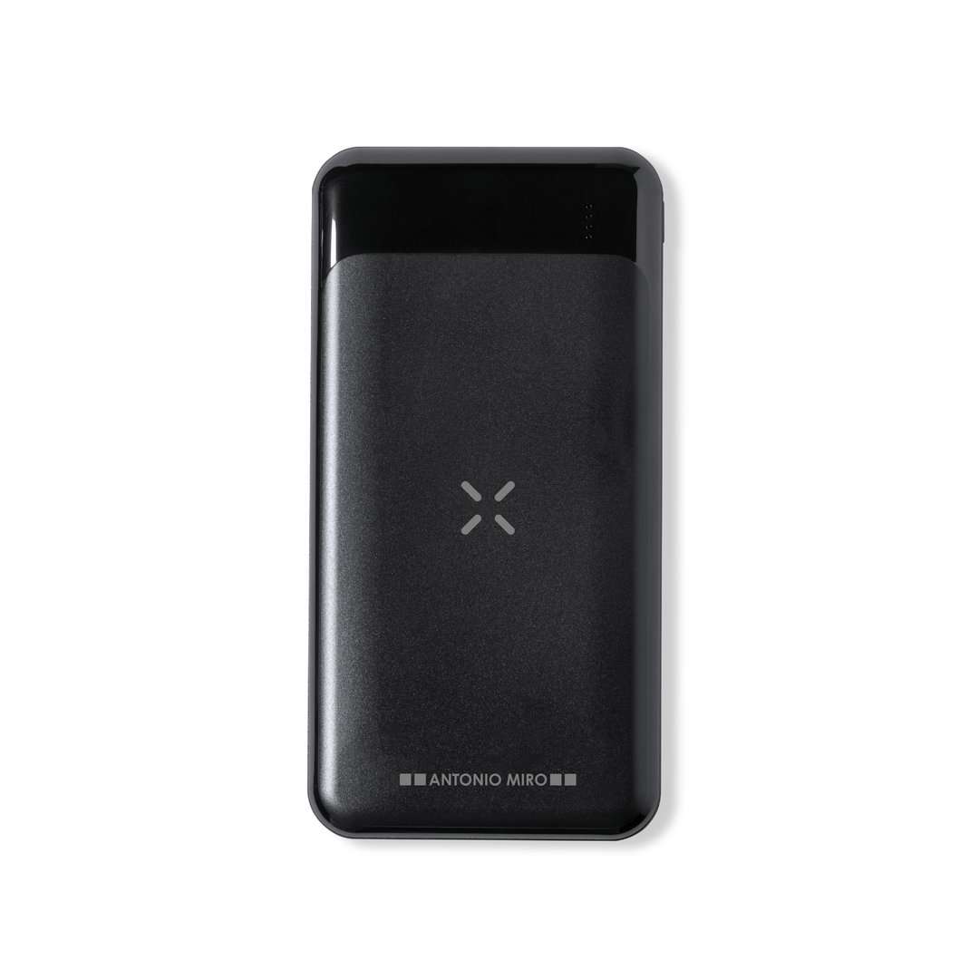 Power bank bydi Antonio Miró, in un'elegante finitura nera opaca, con il logo del marchio sul corpo. Realizzata in resistente ABS, ha una capacità di 5.000 mAh e un caricatore wireless integrato da 5W. 2 uscite USB, con doppia connessione Type-C in/out e ingresso Micro USB. Compatibile con i dispositivi dotati di tecnologia di ricarica wireless Qi. Indicatore di stato di carica a LED, con cavo di ricarica Type-C incluso. Presentato in una scatola nera individuale con logo Antonio Miro, con manuale di istruzioni in inglese e spagnolo. Le capacità indicate su tutte le nostre batterie ausiliarie esterne sono reali, incorporando tutte batterie di grado A e non riciclate, con una durata di almeno 500 cicli di carica e conformi alle normative CE.