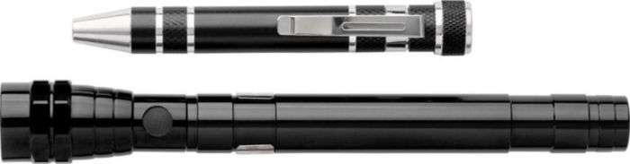 Set d'emegenza, composto da torcia in alluminio telescopica con tre luci LED, flessibile, kit cacciaviti con diverse punte intercambiabili, confezione regalo, batterie incluse