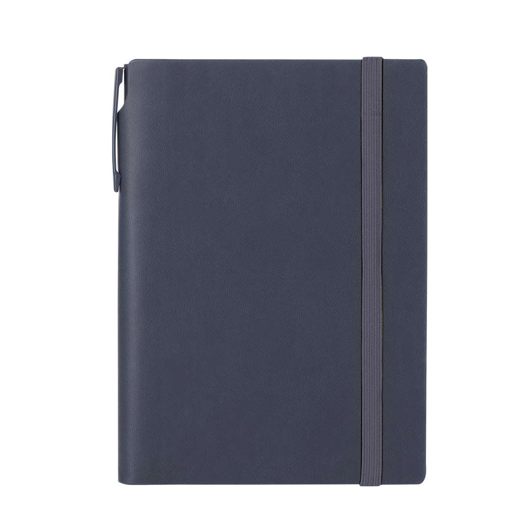 Un blocco note e una penna fatti di PU riciclato e alluminio riciclato. Il set comprende: - Bloccuini per note realizzato in PU riciclata. Copertine rigide, comprende 96 pagine color crema, segnalibro e nastro elastico abbinato per chiusura. Con il logo in PU riciclato. - Penna in alluminio riciclato, con corpo di colore uniforme in finitura in gomma. Ha una pinza, un meccanismo a pulsante e inchiostro blu. Include il badge del logo in alluminio riciclato.Il blocco ha uno spazio per conservare la penna così puoi portare tutto in un unico posto.