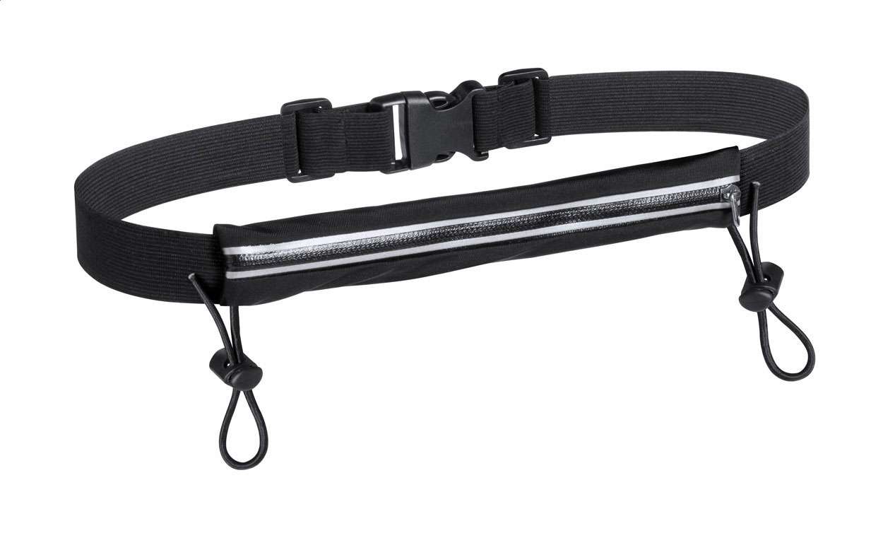 Cintura marsupio in poliestere e spandex con accessorio utilizzabile nelle competizioni sportive per segnalare numero di partenza del concorrente.