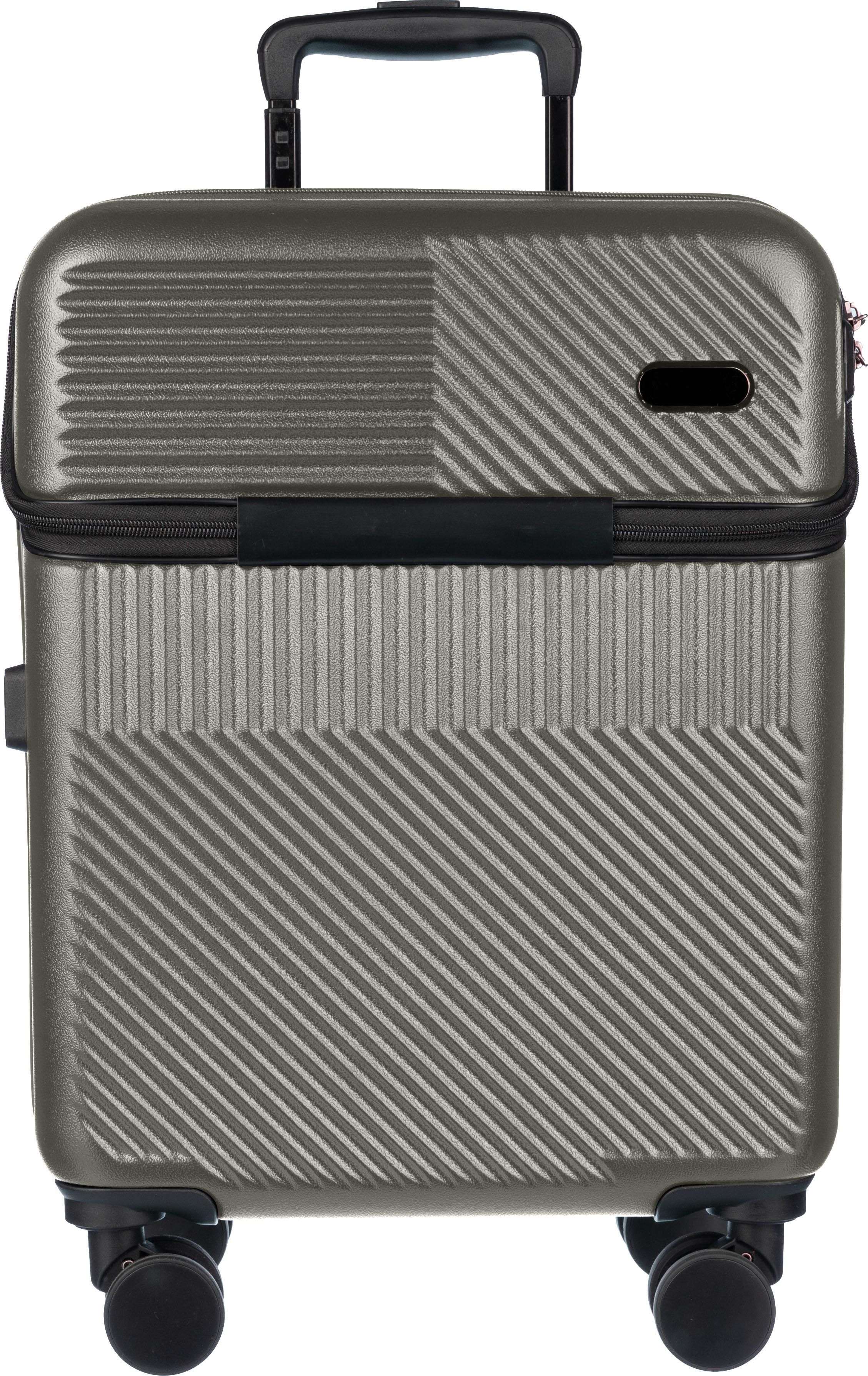 Trolley in ABS da 20 pollici, scomparto portacomputer accessibile tramite chiusura lampo, 8 ruote, manico estensibile su tre livelli, include chiusura con tre lucchetti a combinazione digitale, porta USB, placca di metallo per la personalizzazione laser.