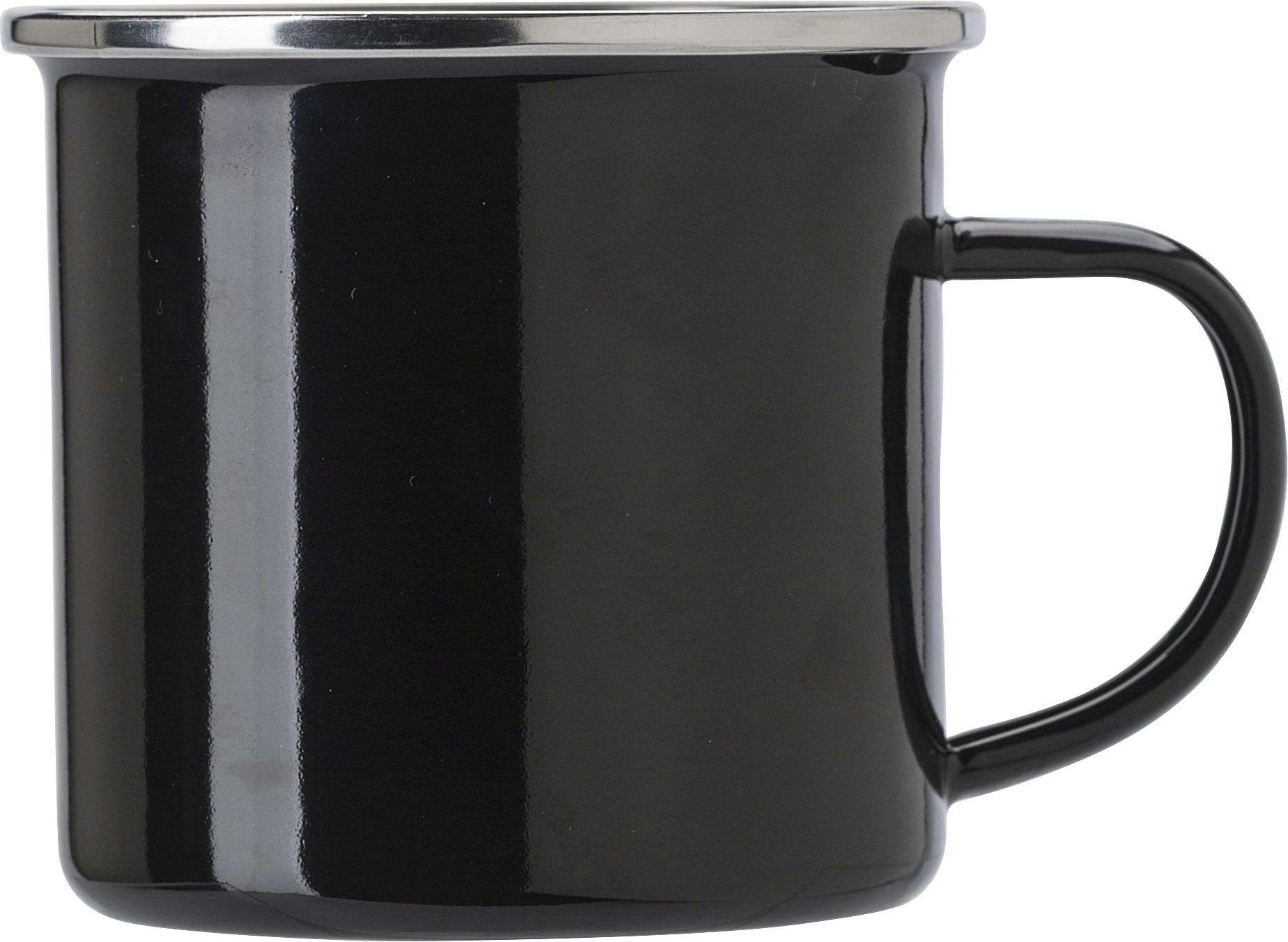 Bicchiere smaltato, bordo in acciaio inossidabile, confezionati singolarmente in una scatola di cartone avana, capacità 350 ml. Questo prodotto non è lavabile in lavastoviglie.