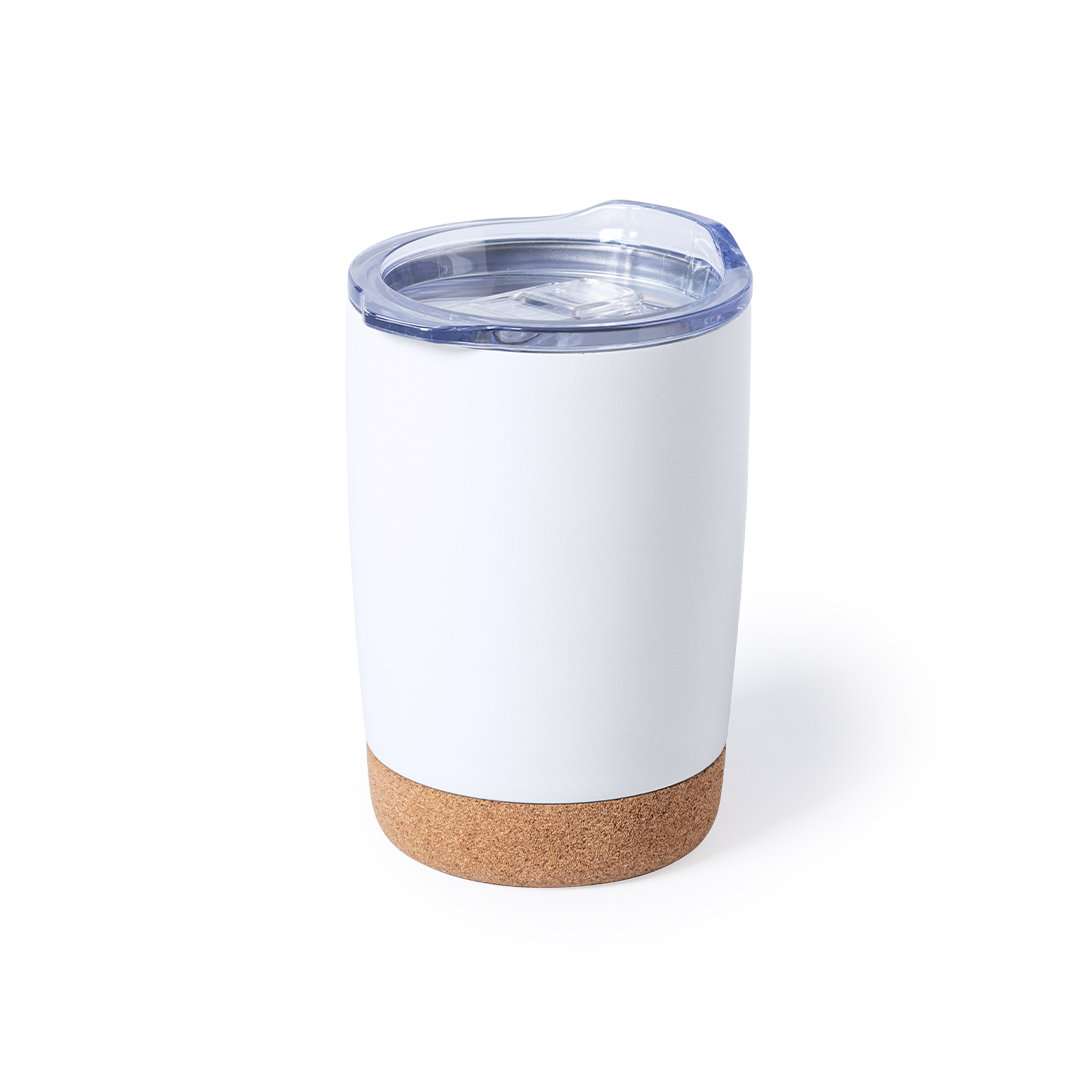 Bicchiere da tavolo realizzato in una combinazione di base in sughero naturale e corpo in acciaio inox con finitura bianca, capacità 380 ml. Con doppio coperchio per una migliore e più duratura conservazione della temperatura e originale tappo dosatore con apertura facilitata trasparente. Confezionato singolarmente in una scatola dal design accattivante.