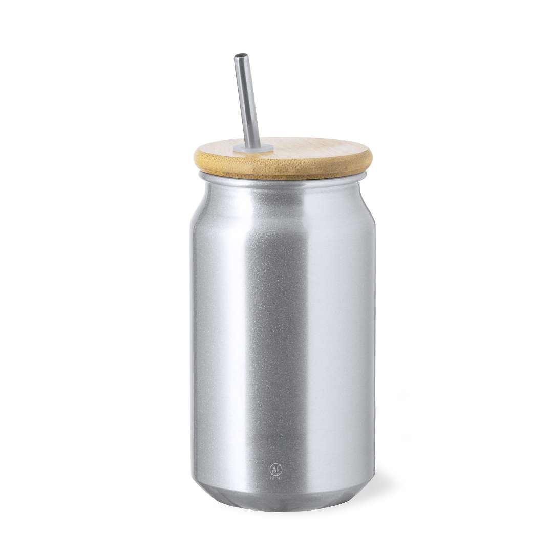 Bicchiere con capacità di 430 ml. Realizzato in alluminio riciclato elegante e sostenibile. Con tappo a scatto in bambù, foro per la cannuccia e cannuccia riutilizzabile in acciaio inox. Con logo alluminio riciclato. Confezionato singolarmente in una scatola kraft di design e in un sacchetto riciclato.L'alluminio riciclato è un materiale con possibilità di riciclaggio quasi infinite, senza perdere le sue proprietà originali e consumando meno energia nel processo.Certificazione GRS (Global Recycled Standard), che garantisce l'origine riciclata del materiale utilizzato per la fabbricazione del prodotto".