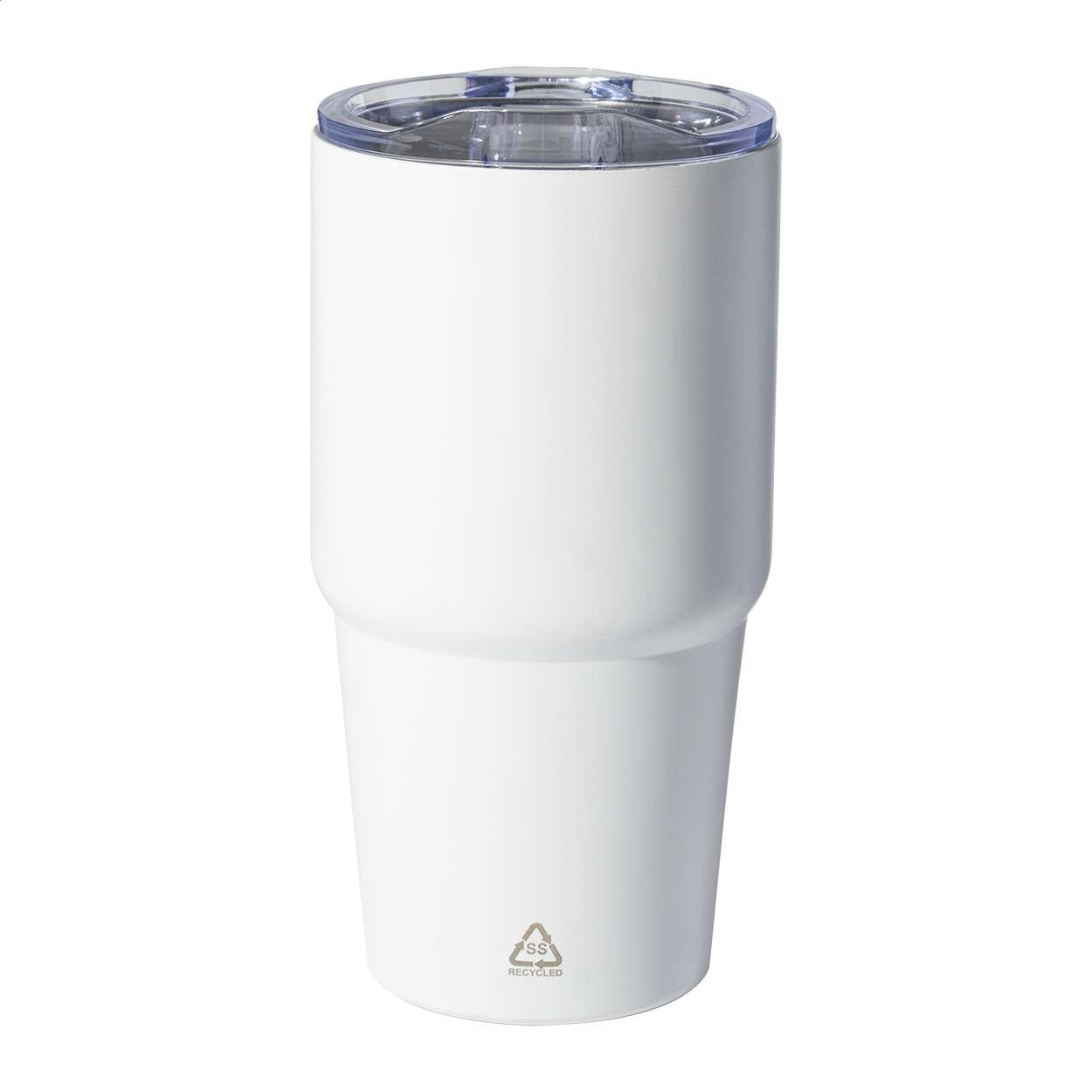 Tazza a doppia parete in acciaio riciclato da 600 ml. con coperchio in plastica PS.