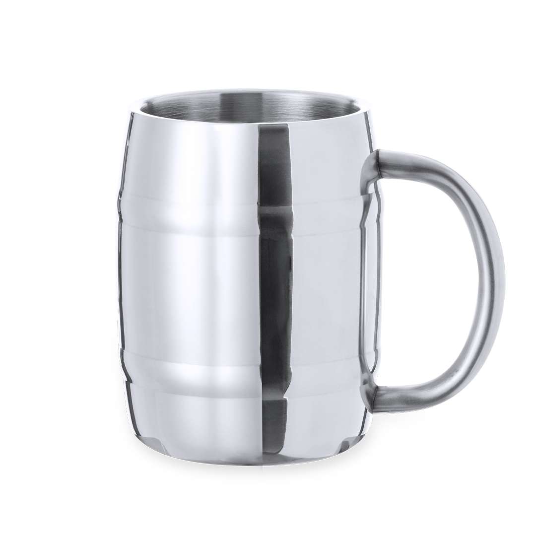 Boccale in acciaio inox con elegante finitura metallica per i bevitori di birra più esigenti. Con una capacità di 450 ml, una comoda impugnatura e una fantastica forma a botte. Presentato in una scatola kraft di design.
