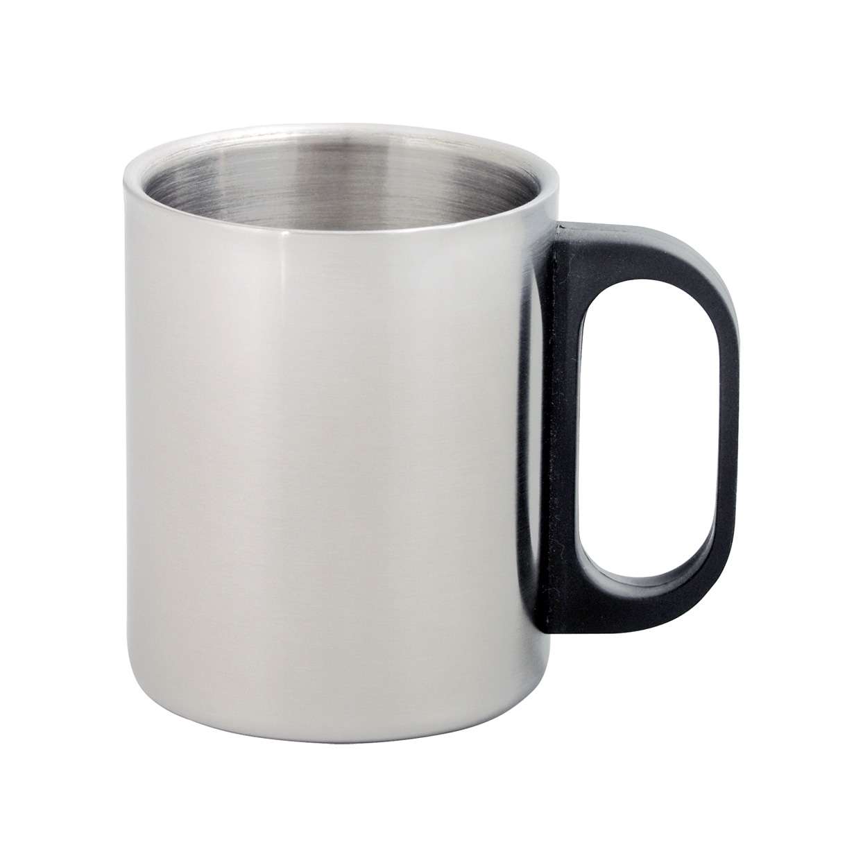 Tazza da 175ml. in acciaio a doppia parete con manico in plastica e confezione in scatola.