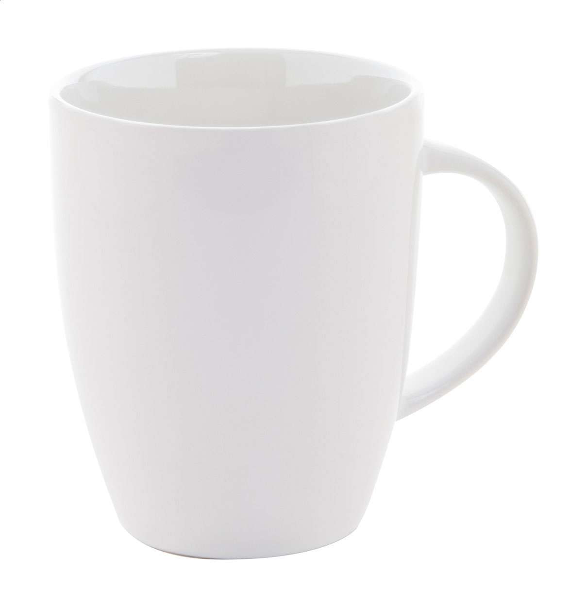 Tazza mug da 340ml. in ceramica bianca di alta qualità con interno colorato. Confezione in cartoncino kraft.