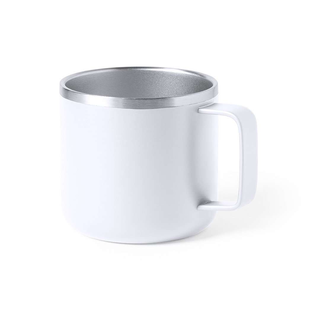 Tazza in acciaio inossidabile a doppio strato con capacità da 350 ml, in elegante finitura bicolore. Confezionata in una scatola individuale.