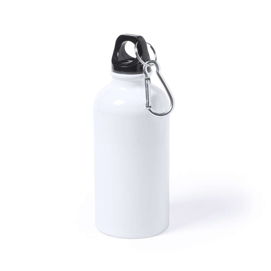 Borraccia da 400 ml con corpo bianco liscio e lucido, appositamente progettata per la stampa in sublimazione. Con tappo di sicurezza a vite e moschettone in metallo per il trasporto. Confezionata singolarmente.Manuale di istruzioni disponibile in spagnolo e inglese.