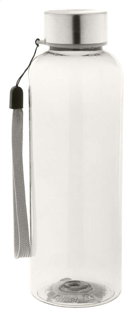 Borraccia da 500ml. in RPET non contenente BPA, con tappo in acciaio e tracolla. Non adatta per l'utilizzo con bevande gassate.