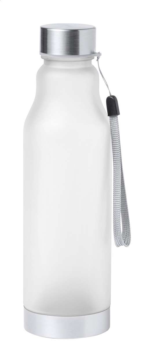 Borraccia da 600ml. in RPET non contenente BPA, tappo e base in acciaio. Non adatta per l'utilizzo con bevande gassate.
