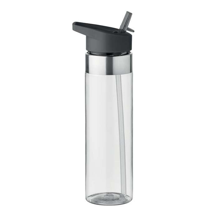 Borraccia in tritan da 650 ml, con dettagli in acciaio inossidabile e piccola cannuccia pieghevole. BPA free. Non adatto a bevande gassate, alcoliche e a base di latte.