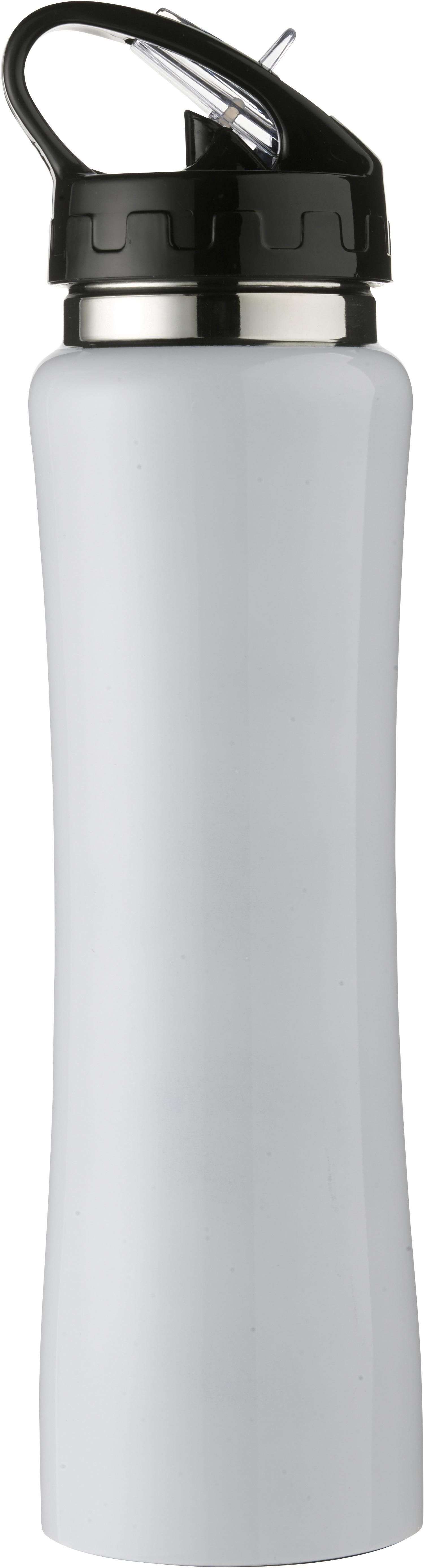 Borraccia botton push, beccuccio pieghevole, cannuccia, in acciaio inox, a doppia parete, in confezione singola bianca, capacità 500 ml