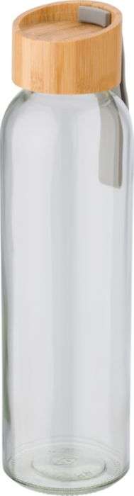 Borraccia in vetro, tappo filettato in bamboo e fascia in silicone, capacità 500 ml